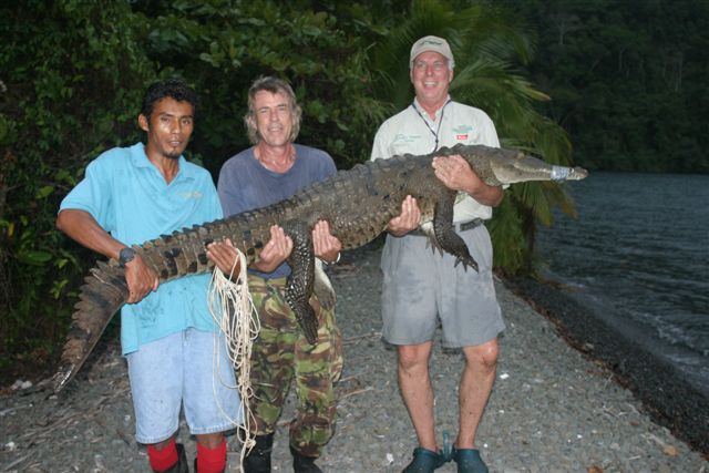 American crocodiles kill on average one person annually in Costa Rica. In recent years these have been tourists! This species does not have a particularly bad reputation, preferring fish to tourists. But large specimens of three and a half meters (12 feet) or more will take large mammals and even people. Because of Costa Rica’s rigorous conservation laws, specimens of this size and larger are common here – reportedly there are crocodiles of up to 6 meters (20 feet) in the Corcovado Lagoon. But the American crocodile is not a threat unless you are dumb enough (or crazy enough like me!!) to swim in rivers, lagoons and lakes where they are known to occur.