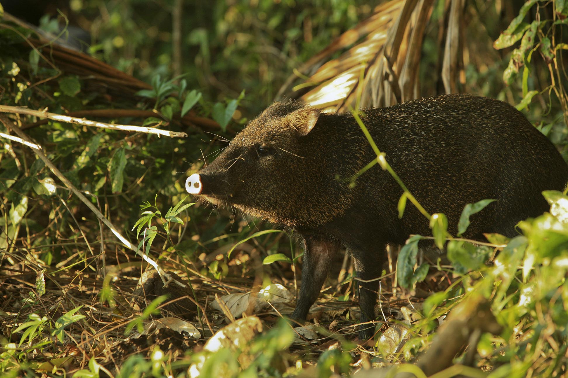 Of the large mammals found in the Neotropics – of which there are surprisingly few – it is only the peccary that has a dubious reputation. They have been known on occasions when taken by surprise, to send the unwary hiker scurrying up a tree for safety. Encounters with peccaries (the larger white-lip peccary in particular), in herds of 20 or more, are common in Corcovado and, as yet, no casualties have been reported. Their foul smell and the loud cracking of their canine teeth when alarmed, make encounters with these beasts an awesome experience, and a memorable one! We recommend that you practice your tree climbing!!